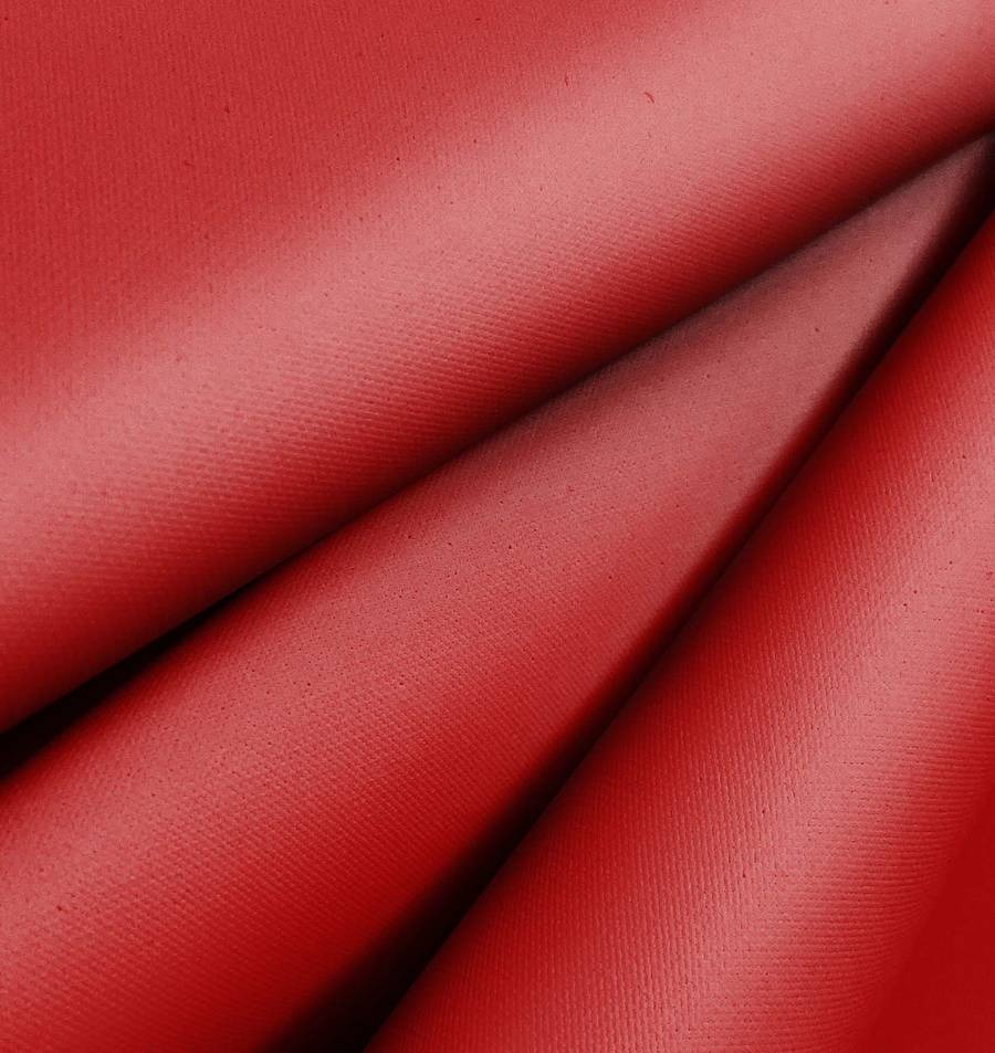 La tela base de este tejido es un tejido técnico impermeable de 100% poliéster, con un gramaje de 200 gr/m2 y un ancho de 150 cm. El color liso impreso es un rojo auburn con una mezcla de tintas cyan, magenta, yellow y black en un CMYK de 24 93 82 19. Este color representa energía, dinamismo y pasión. Simbólicamente, el rojo auburn se asocia con la confianza, el coraje y la determinación. Este color combina especialmente bien con tonos neutros como el negro, blanco y gris, así como con tonos azules y verdes.