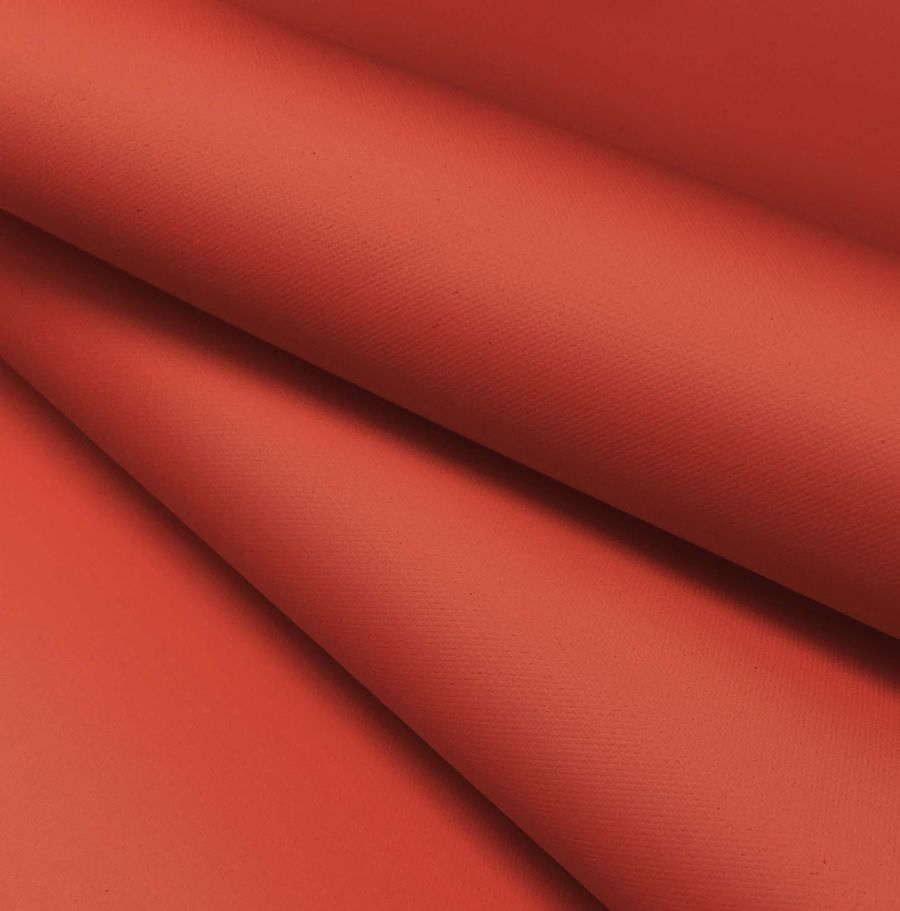 La tela base de nuestro producto es la Tela Impermeable - Outdoor, un tejido técnico compuesto por un 100% de poliéster. Su gramaje es de 200 gr/m2 y su ancho de 150 cm. El color liso impreso es un rojo cinabrio, que se compone de 3% de tinta cian, 85% de tinta magenta, 80% de tinta amarilla y 0% de tinta negra, con un CMYK de 3 85 80 0.