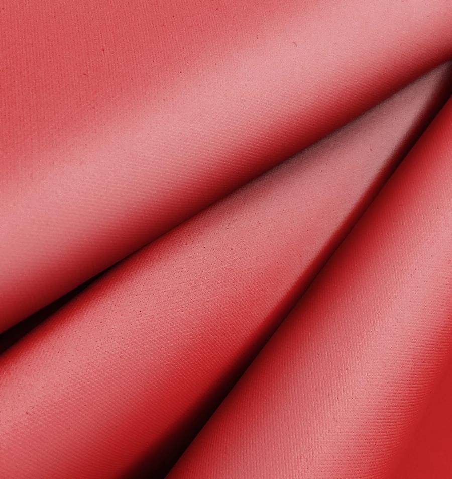 La tela base, denominada Tela Impermeable - Outdoor, es un tejido técnico compuesto al 100% de poliéster, con un gramaje de 200 gr/m2 y un ancho de 150 cm. Su color liso impreso es rojo con un destello agridulce, cuyos atributos de tinta son: cian 19, magenta 78, amarillo 60 y negro 8 (CMYK: 19 78 60 8). Este color secundario, de un rojo intenso, representa la pasión y la fuerza, evocando una sensación de energía y vitalidad. Además, combina especialmente bien con tonos neutros como el gris y el blanco, así como con tonos tierra como el marrón y el beige.