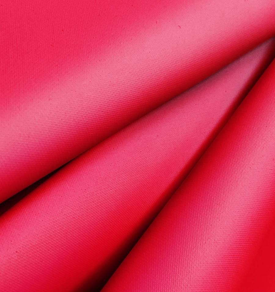 La tela base es la Tela Impermeable - Outdoor, un tejido técnico 100% POLIÉSTER de 200 gr/m2 con un ancho de 150 cm. El color liso impreso es Rojo Crayola, con un CMYK de 0 94 56 0, lo que hace que sea un color vibrante y energético. Este tono rojo combina muy bien con tonos amarillos y naranjas, ya que crea un esquema cromático análogo.