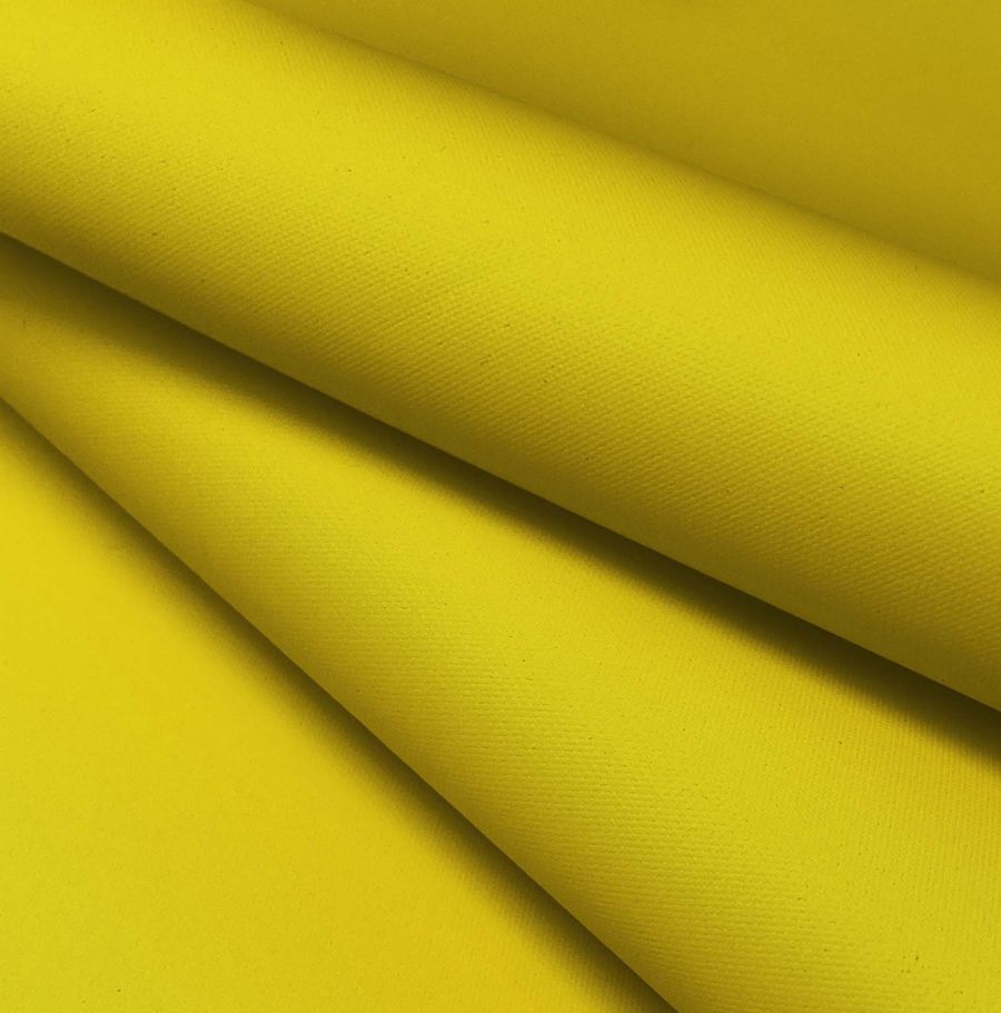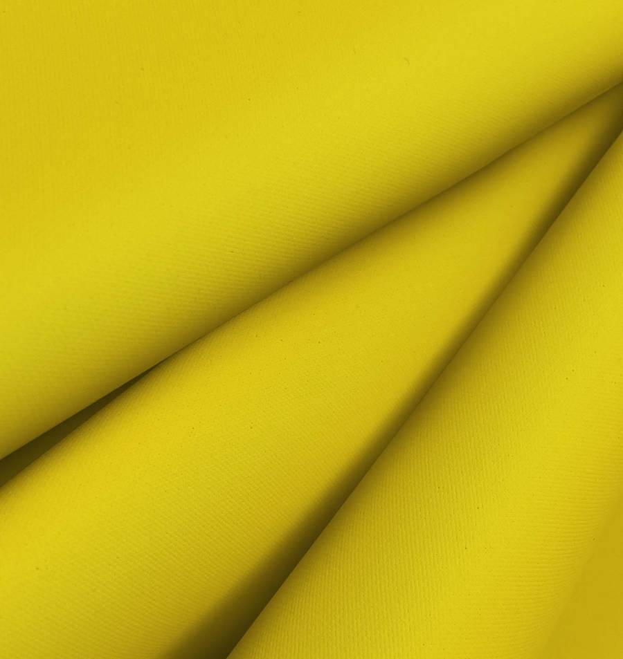 La tela base de este producto es la Tela Impermeable - Outdoor, un tejido técnico con composición 100% poliéster y un gramaje de 200 gr/m2, con un ancho de 150 cm. El color liso impreso es un amarillo huevo con valores de tinta C=0, M=16, Y=91, K=0 y un valor de CMYK de 0 16 91 0. Este color secundario simboliza la energía y la creatividad, y técnicamente se considera un color cálido y luminoso. Se combina bien con otros colores como el gris oscuro y el blanco. Cabe destacar que este tejido está impreso con el color liso a una sola cara por impresión digital textil, no es un tejido tintado sino impreso por una sola cara.