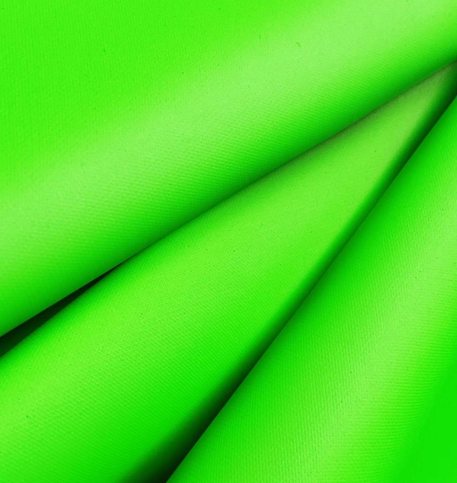 La tela base es la Tela Impermeable - Outdoor, un tejido técnico de 100% poliéster con un gramaje de 200 gr/m2 y ancho de 150 cm. Su color liso impreso es Verde Arlequín, que se obtiene a través de la tecnología de sublimación y cuyo CMYK es 62 0 100 0. Este color se caracteriza por ser un tono vibrante y llamativo, que combina perfectamente con otros tonos verdes más oscuros, así como con tonos neutros como el negro y el gris.