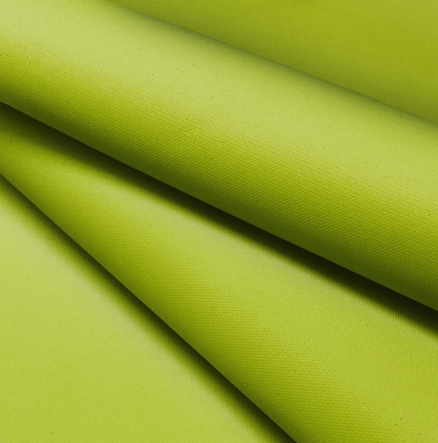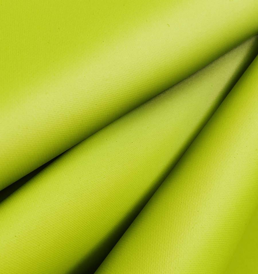 La tela base es la Tela Impermeable - Outdoor, un tejido técnico compuesto al 100% de poliéster con un gramaje de 200 gr/m2 y un ancho de 150 cm. Su color liso impreso es verde ácido, una tonalidad fresca y vibrante. Su CMYK es 42 9 100 0, lo que indica una predominancia de la tinta amarilla y una baja utilización de la tinta magenta, lo que contribuye a un tono más cálido y luminoso. El conjunto crea un efecto llamativo y moderno que combina especialmente bien con grises, colores tierra y marrones oscuros. El tejido está impreso con el color liso a una sola cara por impresión digital textil.