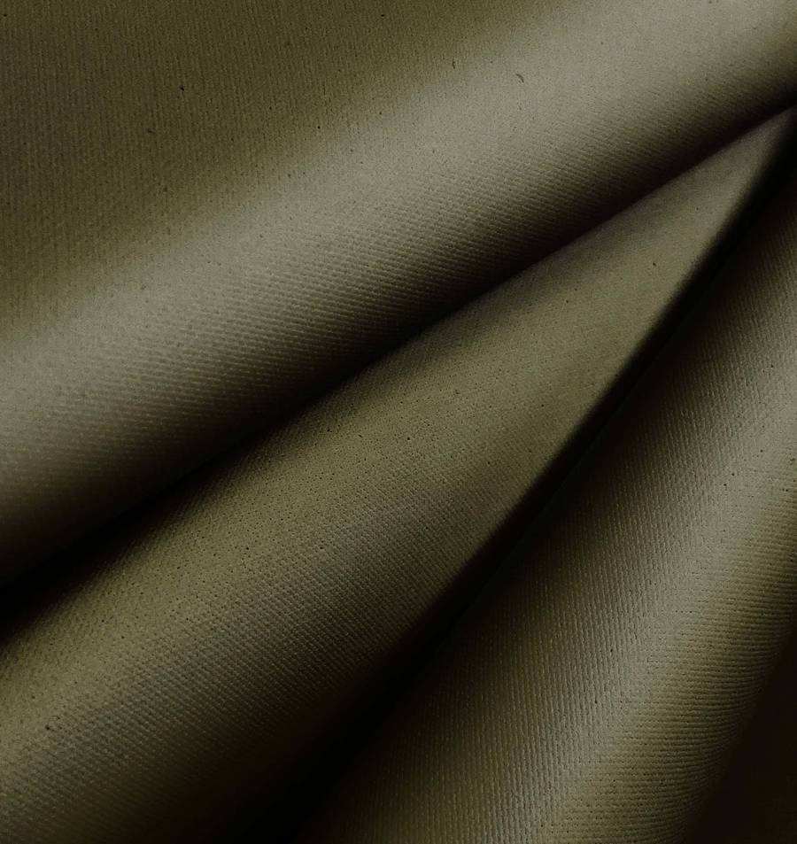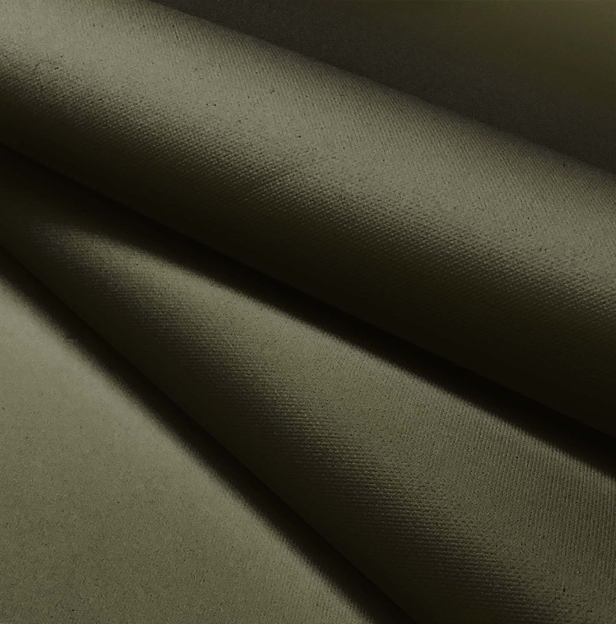 La tela base es la Tela Impermeable - Outdoor, un tejido técnico de 100% POLIÉSTER con un gramaje de 200 gr/m2 y un ancho de 150 cm. El color liso impreso en la tela es Verde Pardo, con una combinación de tintas CYMK de 63 56 87 66. El color Verde Pardo se caracteriza por ser tranquilo y natural, evocando la serenidad y la protección. Este color combina perfectamente con tonos claros como el beige y el marfil, así como con tonos más oscuros como el chocolate y el gris claro.