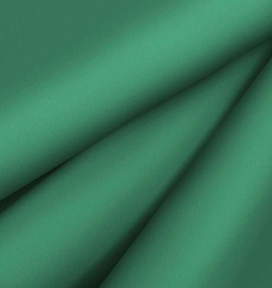 La tela base de esta descripción es la Tela Impermeable - Outdoor, compuesta por 100% poliéster y con un gramaje de 200 gr/m2 y un ancho de 150 cm. El color liso impreso es de un verde petróleo vibrante, cuyo CMYK es 78 29 69 15. Este tono se caracteriza por ser pacífico, equilibrado y refrescante. Combinado con tonos como el beige o el blanco crea un ambiente calmado, mientras que usado con tonos cálidos como el rojo o el naranja, crea un efecto energizante.