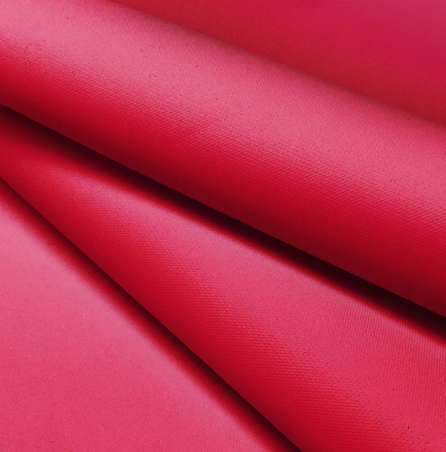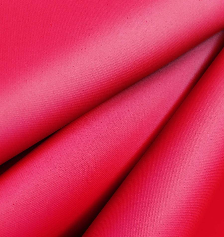 La tela base es la Tela Impermeable - Outdoor, un tejido técnico de 100% poliéster con un gramaje de 200 gr/m2 y un ancho de 150 cm. Este tejido presenta una textura granulada y rugosa al tacto, con un acabado impermeable que lo hace ideal para su uso en moda, deporte, decoración y textil del hogar. Además, su color liso impreso en rojo carmesí es vibrante y llamativo, con una combinación de tintas CMYK de 0 98 56 0 que le dan un tono caliente y apasionado.