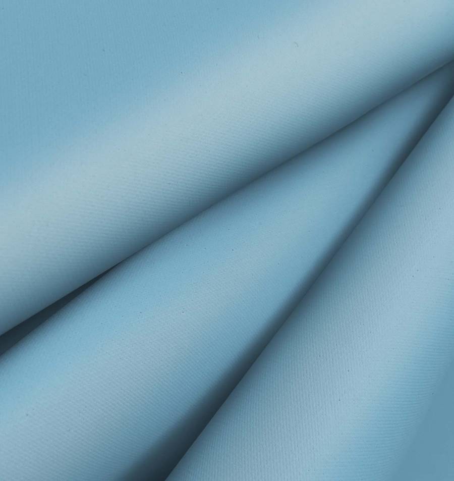 El tejido está impreso con el color liso Azul Curaçao en una sola cara por impresión digital textil, lo que permite una mayor Nitidez y calidad de imagen de los patrones decorativos diseñados para la tela. Las características generales de la tela base incluyen un acabado impermeable y una Textura rugosa que proporciona granulados visuales y táctiles. Además, la tela también tiene un aspecto opaco gracias a la composición de poliéster.