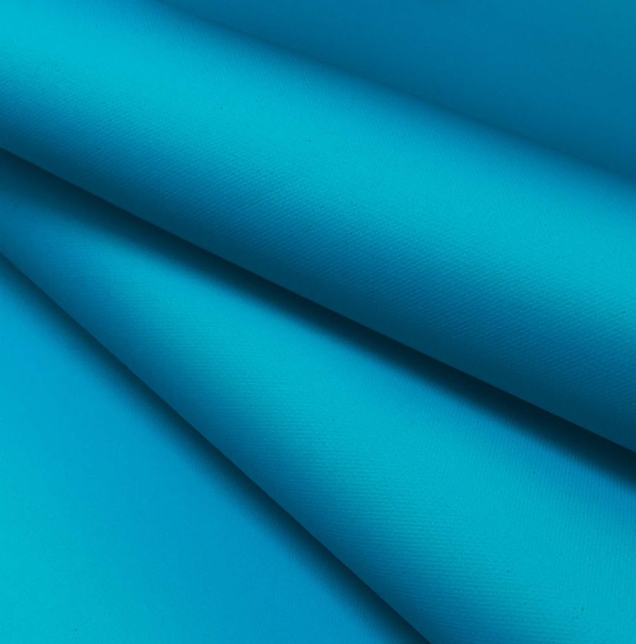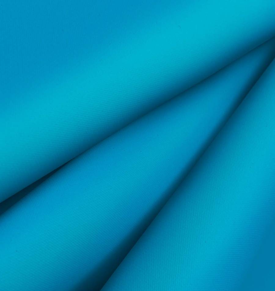 La tela base es la Tela Impermeable - Outdoor, un tejido técnico de poliéster con un gramaje de 200 gr/m2 y un ancho de 150 cm. El color liso impreso es Azul Jacinto, con un CMYK de 78 25 2 0, que lo hace un tono azul de profundidad media con un ligero matiz púrpura.