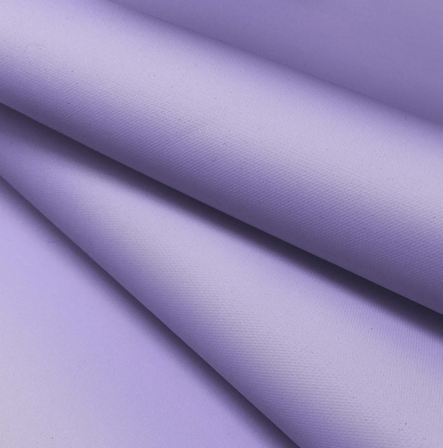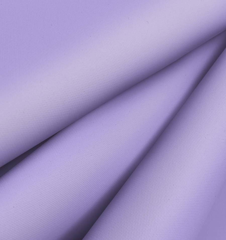 La tela base es la Tela Impermeable - Outdoor, un tejido técnico de 100% poliéster con un gramaje de 200 gr/m2 y una anchura de 150 cm. El color liso impreso es Azul lavanda, representado por un CMYK de 35, 37, 0, 0. Este tono suave y relajante es una mezcla de azul y rosa pálido, perfecto para proyectos de moda femenina o decorativos. Combina especialmente bien con tonos neutros como el gris o el blanco.