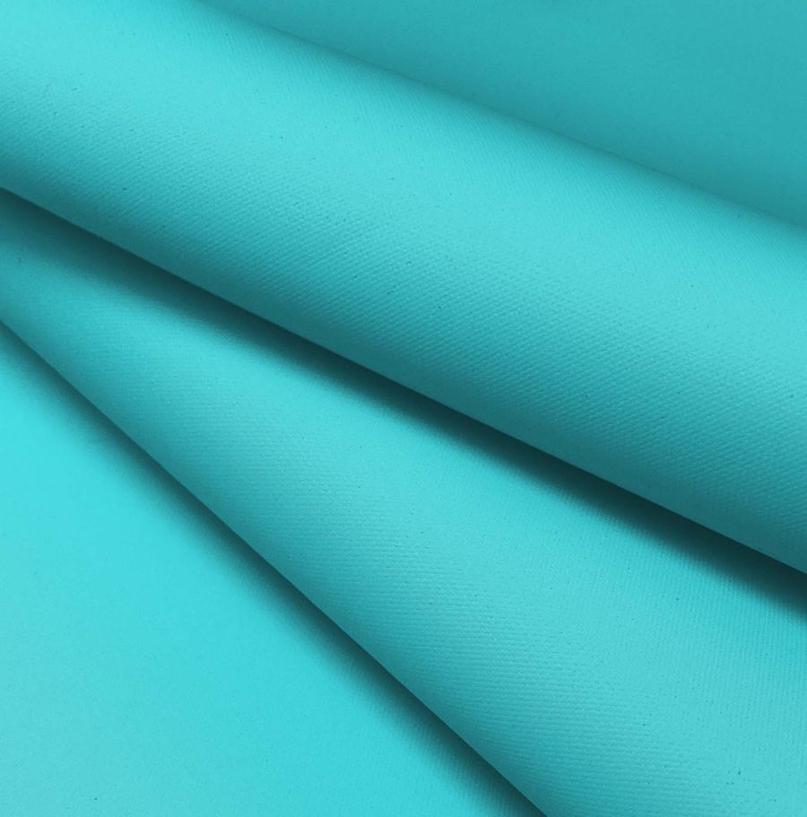 La tela base Impermeable - Outdoor de 100% poliéster, con un gramaje de 200 gr/m2 y un ancho de 150 cm, es un tejido técnico que destaca por su acabado impermeable y granulado. El color liso impreso es el Azul Neón con unas características de tinta de Cyan 55, Magenta 0, Yellow 12 y Black 0, con un CMYK de 55 0 12 0. Este color simboliza la vitalidad y la energía que se asocian al deporte y la actividad al aire libre. Además, combina perfectamente con los colores blanco, naranja y verde lima.