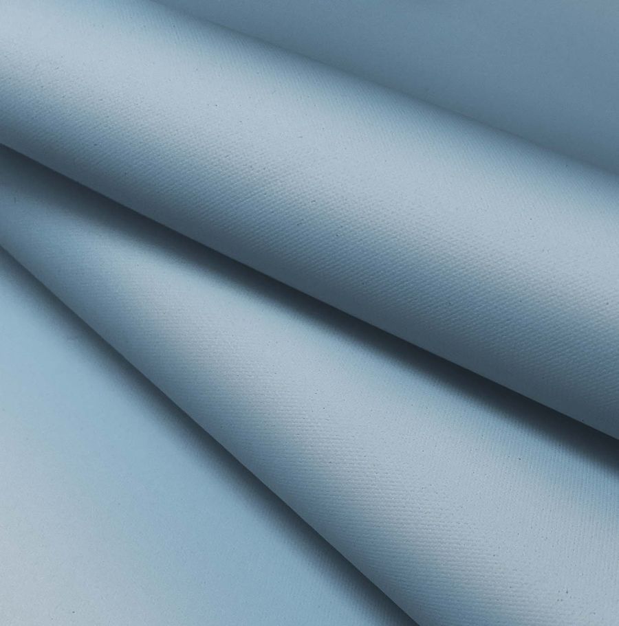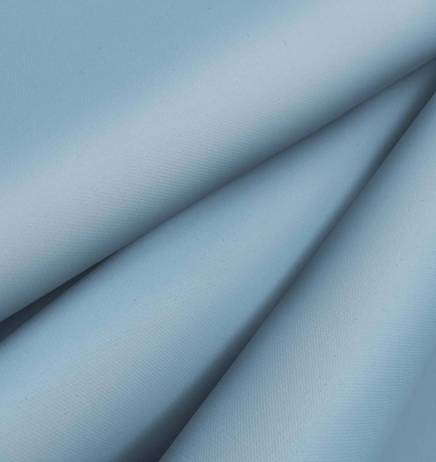 La tela base es la Tela Impermeable - Outdoor de tejido técnico con composición 100% poliéster y un gramaje de 200 gr/m2. El color liso impreso es de un tono Azul Ópalo, con una combinación de tintas CMYK de 51 para el cyan, 19 para magenta, 11 para yellow y 0 para black. Este color secundario, evoca sensaciones de tranquilidad, armonía y seguridad, y combina perfectamente con tonos claros como el blanco, beige o gris, así como también con tonos más intensos como el rojo, verde y amarillo.