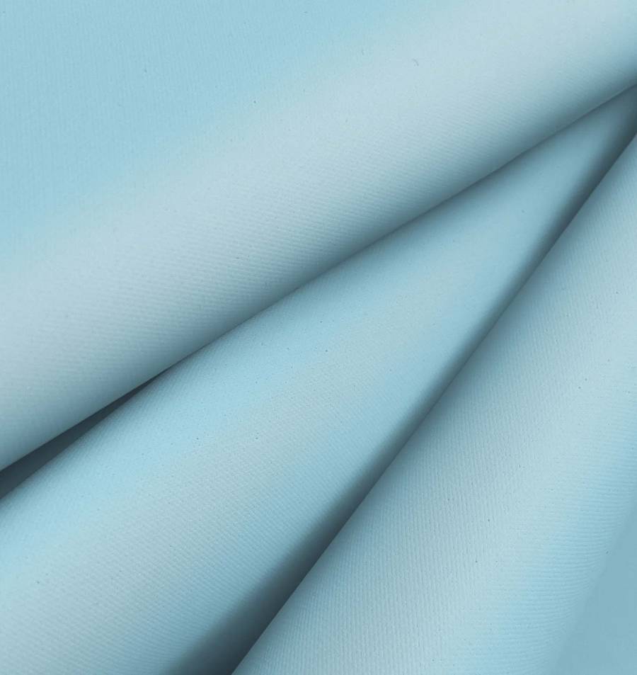 La tela base es la Tela Impermeable - Outdoor, un tejido técnico compuesto por 100% poliéster, con un gramaje de 200 gr/m2 y un ancho de 150 cm. Su color liso impreso es Azul Pálido y su CMYK es 37 0 2 0. El color secundario de este tejido es el Cyan, un color frío y relajante que combina perfectamente con otros tonos fríos como el blanco, el gris y el turquesa.