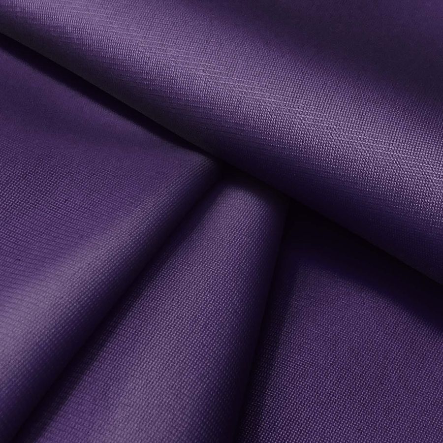 La tela base es la Tela Perchada para Sudaderas - Boston de 100% poliéster con un gramaje de 220gr/m2 y una anchura de 160cm. Además, su acabado de perchado le proporciona una suavidad excepcional al tacto. El color liso impreso en la tela base es un Morado/Violeta Ruso con un CMYK de 94 100 34 36, lo que nos indica que es un color con mucho contraste y saturación.
