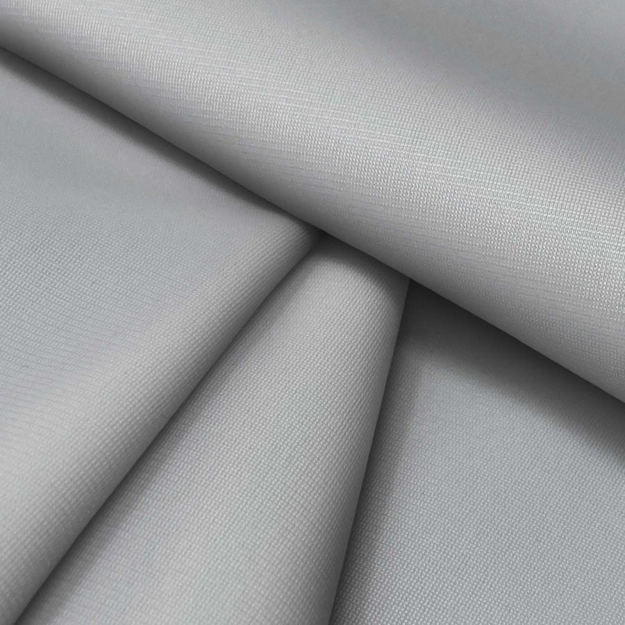 La tela base es una Tela Perchada para Sudaderas - Boston, de composición 100% poliéster con un gramaje de 220 gr/m2, ancho de 160 cm y certificada GRS. El color liso impreso es un Gris con tonos arena de plata, con un CMYK de 29 20 21 2, impreso a una sola cara por impresión digital textil.