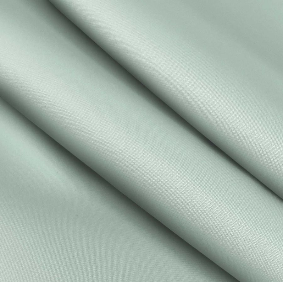 La tela base de este tejido es la Tela Perchada para Sudaderas - Boston, compuesta por 100% poliéster con un gramaje de 220gr/m2 y un ancho de 160cm. El color liso impreso es de un tono verde claro, denominado Espuma de Mar, que tiene un contenido en el CMYK de 31 4 25 0, siendo la tinta magenta la que tiene menor presencia. Este color se puede combinar con otros tonos pasteles y neutros como el rosa, amarillo, beige y gris.