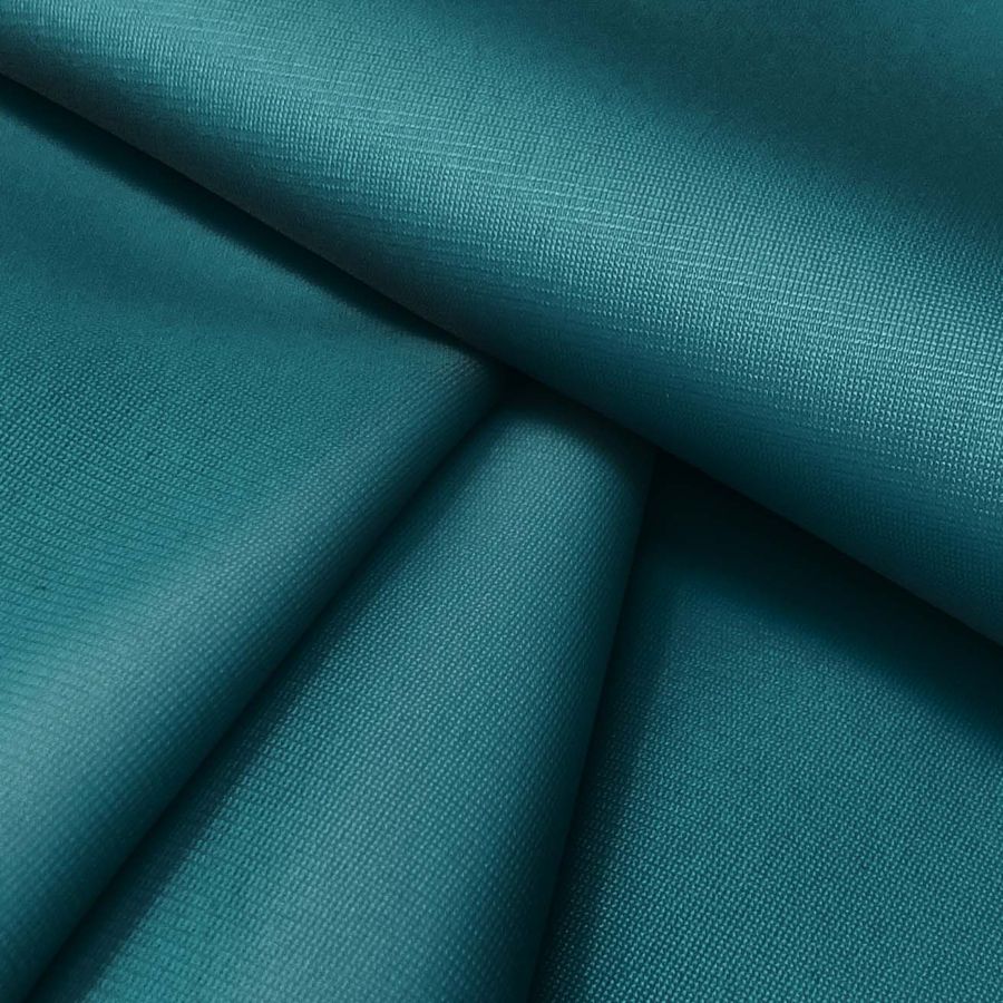 La tela base es la Tela Perchada para Sudaderas - Boston, compuesta por un 100% de poliéster, con un gramaje de 220 gr/m2, un ancho de 160 cm y certificada como sostenible y reciclada con la certificación GRS. El color liso impreso es un Azul del Golfo, con el siguiente perfil de color CMYK: 88 40 45 32. Este color secundario es un tono de azul claro con un toque de verde, que hace referencia al océano Pacífico en el extremo suroeste de los estados de California y Baja California, México. El color Azul del Golfo se combina perfectamente con otros tonos de azul, verde, blanco, gris y negro. Es importante destacar que este tejido está impreso con el color liso a una sola cara por impresión digital textil, lo que significa que el color se encuentra solamente en una cara del tejido.