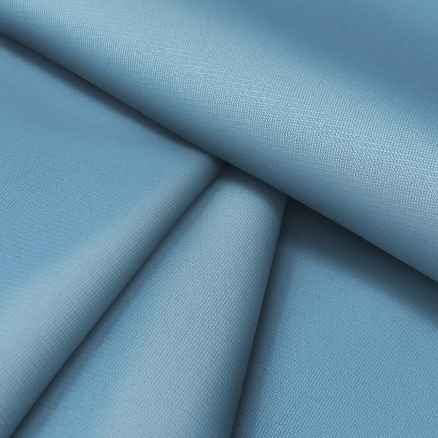La tela base es una Sudadera Perchada de poliéster con un gramaje de 220 gr/m2 y un ancho de 160 cm. El color liso impreso es un hermoso tono de azul claro, que se refleja en el CMYK con una mezcla de 57 en tintas cyan, 20 en magenta y 10 en yellow. Este color secundario es muy simbólico, ya que representa la frescura y amplitud del cielo, así como la calma y tranquilidad que esto evoca. El azul cielo se combina bien con colores naturales y neutros, y también puede ser una excelente elección cuando se busca un efecto de contraste con tonos fuertes o brillantes. El tejido es impreso a una sola cara por impresión digital textil, lo que significa que no es un tejido tintado sino impreso por una sola cara con un color liso uniforme y vívido.