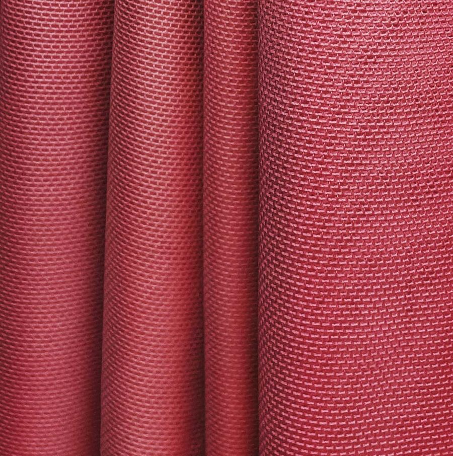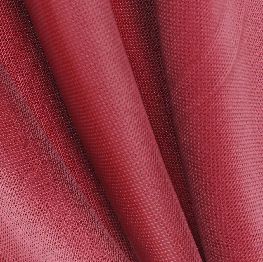 La tela base es el Tul Elástico - Oslo, con composición de 94% poliéster y 6% elastano, con un gramaje de 80 gr/m2 y un ancho de 147 cm. El color liso impreso es de tonalidad rojo auburn, con una combinación de tintas CMYK de 27 98 75 29. Este tono muestra un carácter profundo, simbolizando la pasión y la fuerza, mezclando intensidades de marrón y rojo. Se combina con tonos neutros como beige y marrón oscuro, y también con tonos verdes y azules similares a su composición cromática.