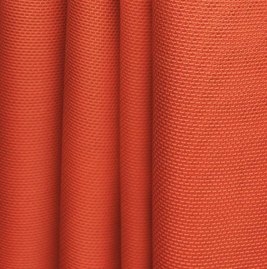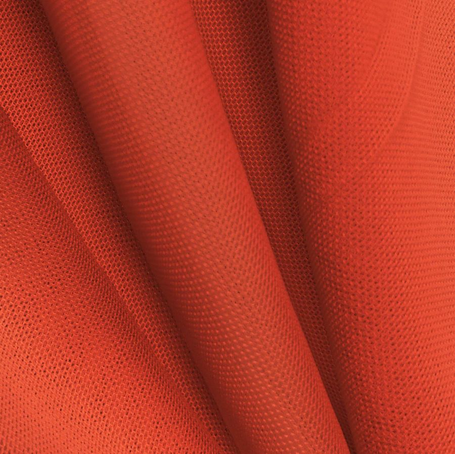 La tela base es el Tul Elástico - Oslo, con una composición de 94% poliéster y 6% elastano. Su gramaje es de 80 gr/m2 y su ancho de 147 cm. El color liso impreso es el Cinabrio, representado por el CMYK 11 86 87 2, que muestra un tono rojo brillante y vibrante. Este es un color secundario de la mezcla de tonos cian, magenta y amarillo con poco componente de tinta negra. Combina perfectamente con tonos tierra y marrones, así como tonos cárnicos y rosas.