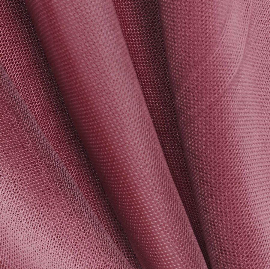La tela base es Tul Elástico - Oslo, con una composición de 94% poliéster y 6% elastano, un gramaje de 80 gr/m2 y un ancho de 147 cm. El color liso impreso es Rojo Granate, compuesto por una tinta cyan de 33, magenta de 83, yellow de 51 y black de 42, con un CMYK de 33 83 51 42. Este color evoca la pasión, el amor y el deseo, y se combina perfectamente con tonos neutros como el beige o el blanco, así como tonos oscuros como el negro o marrón.