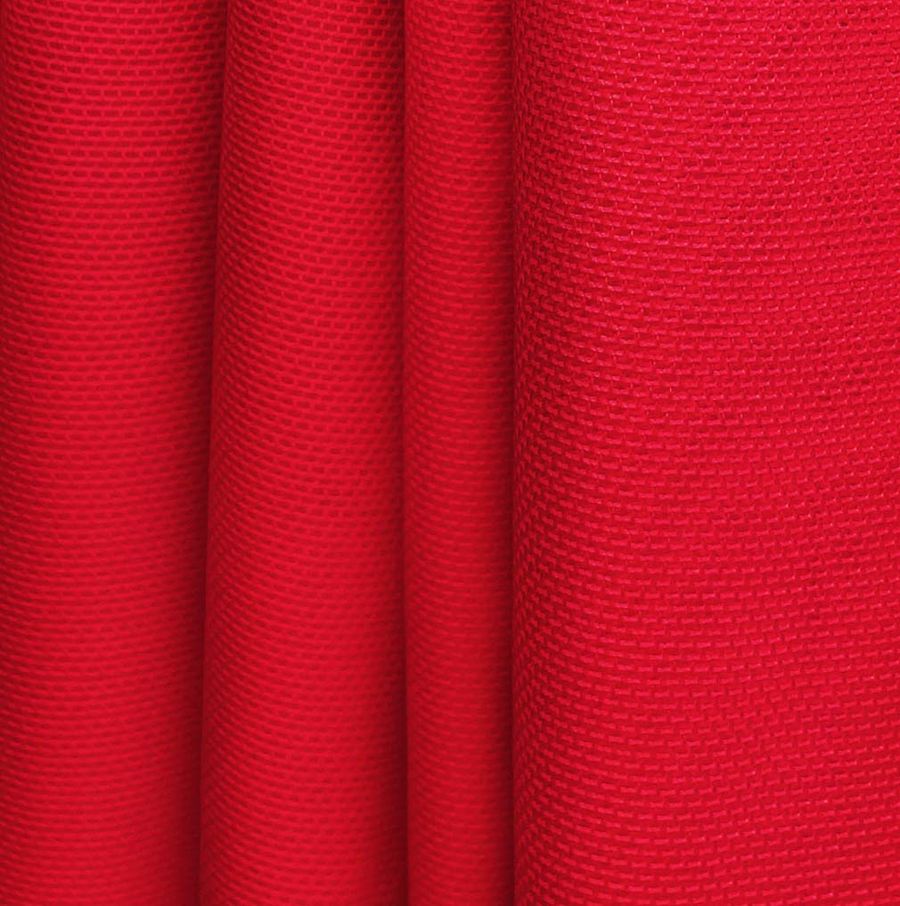 La tela base de este tejido es un tul elástico llamado Oslo, compuesto por 94% de poliéster y un 6% de elastano. Su gramaje es de 80 gr/m2 y su ancho es de 147 cm. El color liso impreso es rojo caramelo, con una mezcla de tinta cian (11), magenta (100), amarillo (91) y negro (3), que da lugar al modelo CMYK: 11 100 91 3. El color secundario, el caramelo, es un tono cálido y dulce que representa la honestidad, la suavidad y la calidez. Este color se combina bien con tonos marrón, beige, rosa y verde. La tela no está tintada, sino impresa por una sola cara mediante impresión digital textil.