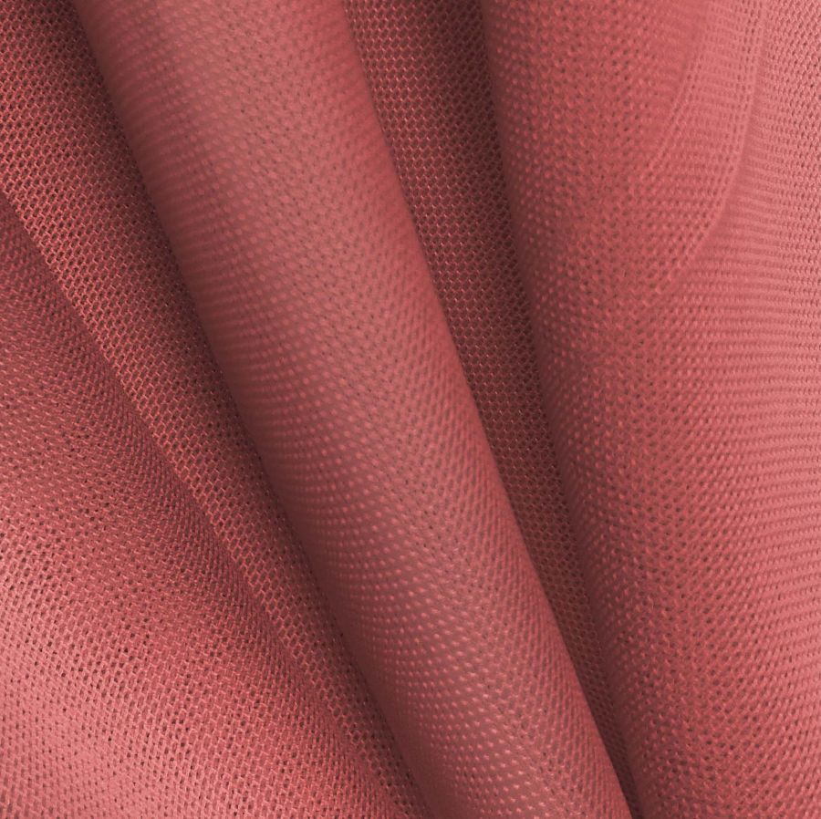 El Tul Elástico - Oslo es una tela suave y translúcida, compuesta por un 94% de poliéster y un 6% de elastano, con un gramaje de 80 gr/m2 y un ancho de 147 cm. Su color liso impreso es Rojo Piel Roja con un CMYK de 24 73 56 16. Este color simboliza la pasión y el deseo, con una connotación fuerte y atrevida, lo que la hace perfecta para crear prendas de lencería o vestidos de noche. Complementa perfectamente con colores como el negro, dorado y plateado.
