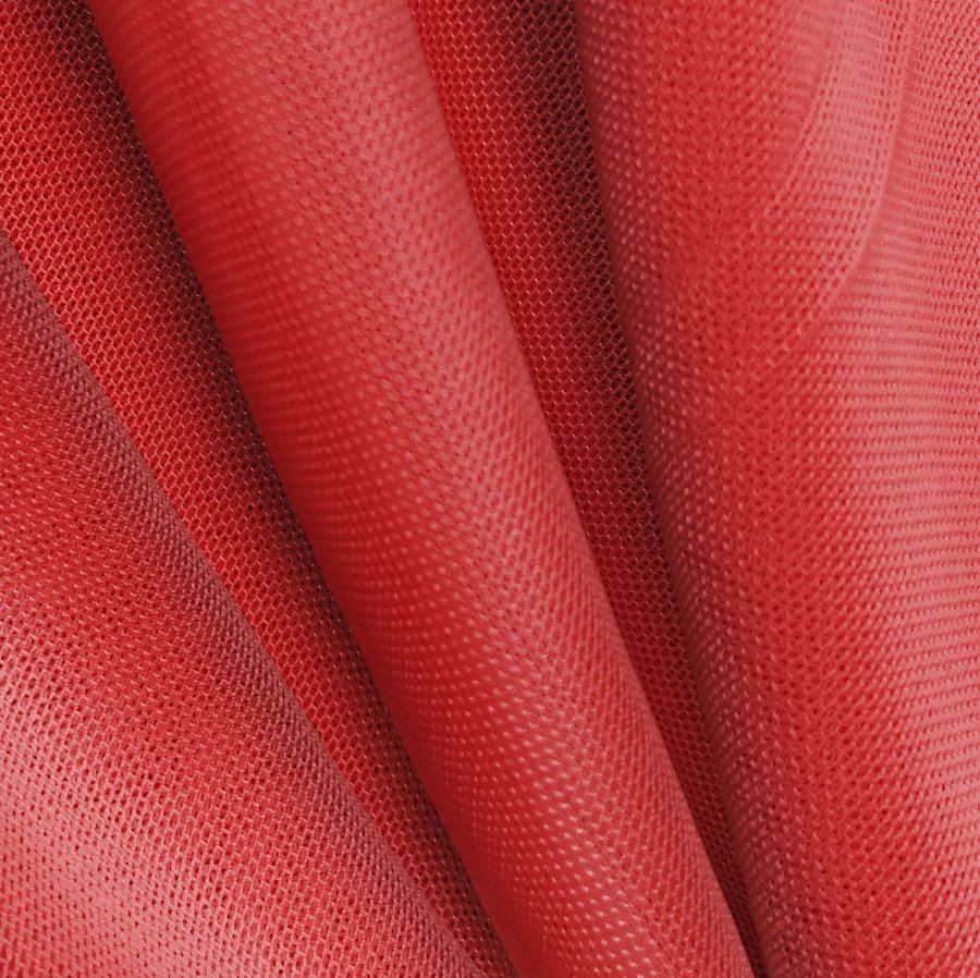 La tela base es el Tul Elástico - Oslo, con una composición de 94% poliéster y 6% elastano, un gramaje de 80 gr/m2 y un ancho de 147 cm. El color liso impreso en la tela es Rojo Coche de Bomberos, con un CMYK de 18 98 94 9 y se combina perfectamente con tonos grises y azules oscuros. El tejido está impreso con el color liso a una sola cara por impresión digital textil. La tela cuenta con características generales de textura visual y táctil delgada y elástica, lo que la hace ideal para prendas de moda y lencería. Entre las aplicaciones y usos de la tela se encuentran faldas, vestidos, sujetadores, braguitas, bodies, accesorios y vestidos de novia. Es importante tener en cuenta que la tela no debe ser blanqueada, lavada en seco, planchada ni secada con secadora y se debe lavar a una temperatura máxima de 30ºC. La tecnología de impresión utilizada en su fabricación es la sublimación de poliéster, que crea un acabado de alta calidad y duradero en la tela.