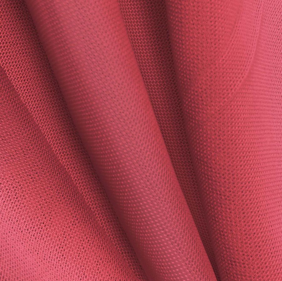 El Tul Elástico - Oslo es un tejido de tul compuesto por un 94% de poliéster y un 6% de elastano con un gramaje de 80 gr/m2 y un ancho de 147 cm. El color liso impreso es Rojo Labio, un tono secundario que mezcla una alta dosis de magenta con tonos de amarillo y cian, y se complementa muy bien con tonos de amarillo y verde. La tela está impresa con este color liso a una sola cara por impresión digital textil. Las características de la tela base son su textura visual transparente y elástica con un tacto delgado y elástico. El color liso impreso es vibrante, duradero y resistente a la decoloración.