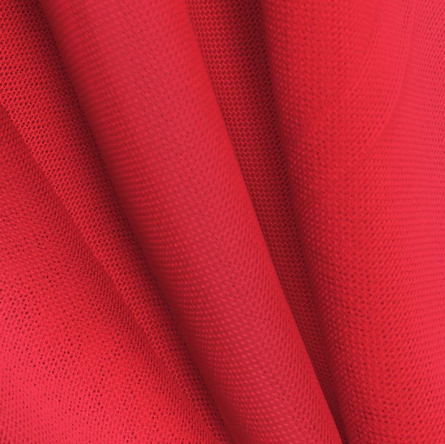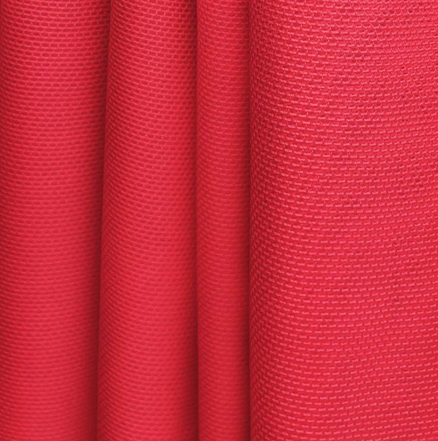 La tela base es el Tul Elástico - Oslo, compuesta por un 94% de poliéster y un 6% de elastano, con un gramaje de 80 gr/m2 y un ancho de 147 cm. El color liso impreso es un Rojo Rubor, cuyo CMYK es 0 93 74 0. Este color es un tono suave y delicado que combina perfectamente con tonos pastel, neutralizando así la frialdad de estos últimos. La tela está impresa con el color liso en una sola cara por impresión digital textil.