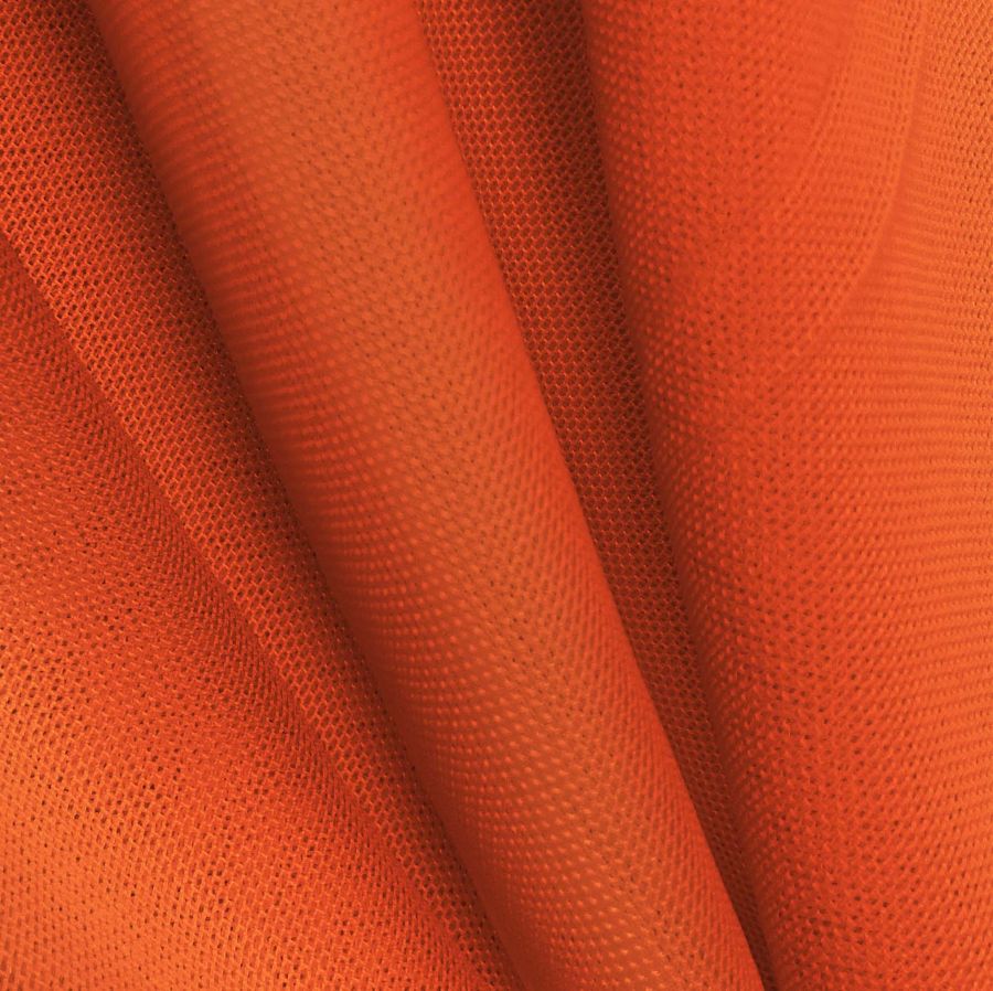 Esta tela base es el Tul Elástico - Oslo, compuesta en un 94% de poliéster y un 6% de elastano, con un gramaje de 80 gr/m2 y un ancho de 147 cm. El color liso impreso presenta una tonalidad Rojo-Rojo anaranjado, con un CMYK de 0 82 89 0. Este color simboliza la pasión, el amor y la energía, y técnicamente es especialmente resistente a las luces ultravioleta y a los roces en la tela.