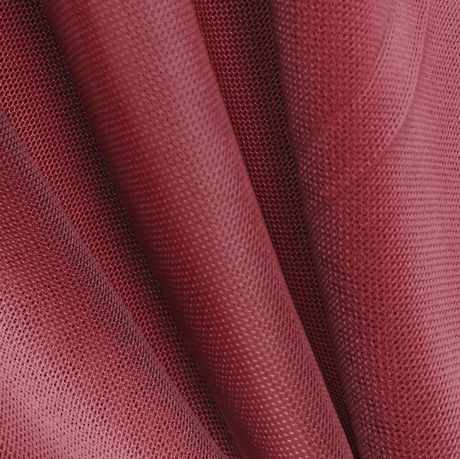 El Tul Elástico - Oslo es una tela de tipo tul compuesta por un 94% de poliéster y un 6% de elastano, con un gramaje de 80 gr/m2 y un ancho de 147 cm. El color liso impreso en esta tela es el Rojo Borgoña, representado por un CMYK de 32 99 75 45. Este color se puede describir como un tono intenso y elegante que transmite fuerza y pasión. Complementa muy bien con colores neutros como el blanco y el negro, así como con tonos dorados y plateados para dar un toque de sofisticación.