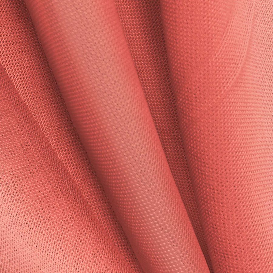 La tela base, conocida como Tul Elástico - Oslo, está compuesta por un 94% de poliéster y un 6% de elastano, lo que le otorga una alta capacidad elástica y una gran adaptabilidad a la forma del cuerpo. Su gramaje es de 80 gr/m2 y cuenta con un ancho de 147 cm. El color liso impreso en esta tela es rojo claro con una tinta magenta de 71 y una tinta yellow de 53 en CMYK.