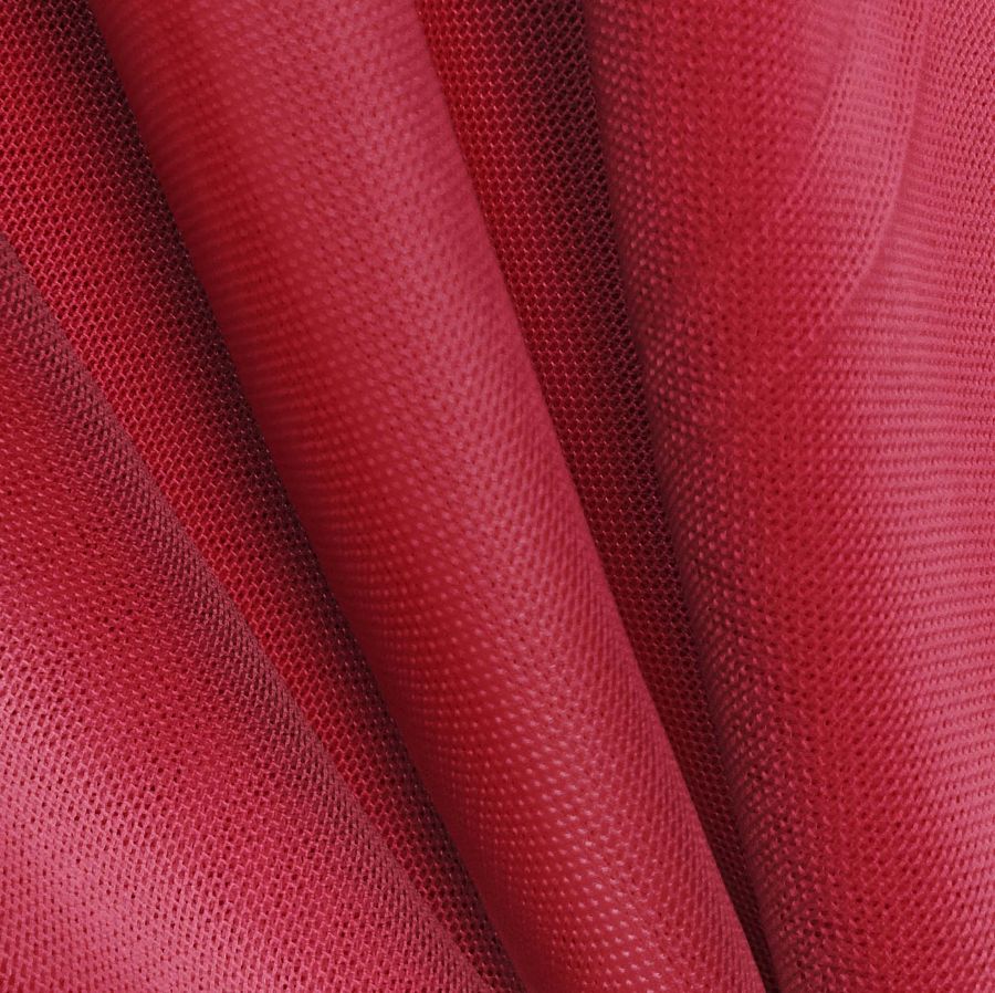 La tela base es el Tul Elástico - Oslo, compuesta por un 94% de poliéster y un 6% de elastano, con un gramaje de 80 gr/m2 y un ancho de 147 cm. El color liso impreso es un vibrante carmín con el siguiente contenido de CMYK: 26 100 91 28. El color secundario es el magenta al 100% y combina perfectamente con colores cálidos como el naranja y el amarillo, así como con tonos neutros como el gris y el negro. Es importante destacar que este tejido está impreso a una sola cara por impresión digital textil, lo que garantiza un acabado nítido y duradero.