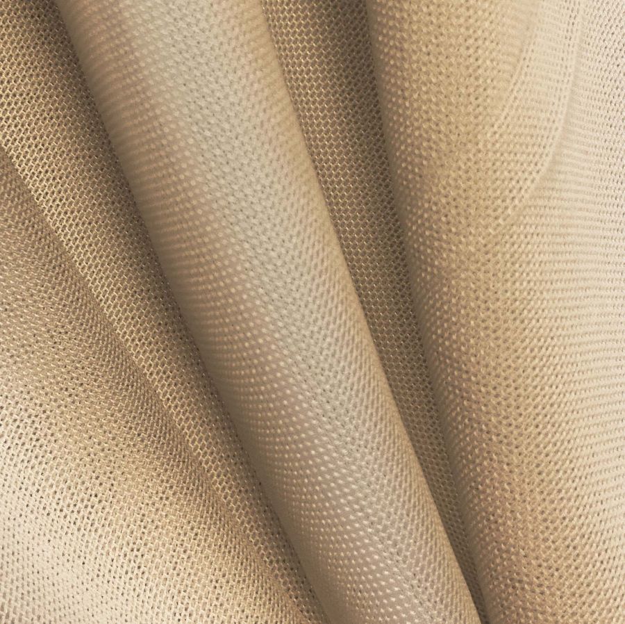 La tela base de esta descripción es el Tul Elástico - Oslo, compuesta por un 94% de poliéster y un 6% de elastano, con un gramaje de 80 gramos por metro cuadrado y un ancho de 147 centímetros. El color liso impreso es un tono de rojo beige con una combinación de tintas CMYK de 18 de cian, 32 de magenta, 48 de amarillo y 6 de negro. Este color se presenta como un tono sutil y elegante, con un carácter suave y dulce, que puede destacar por sí solo o servir como base para complementar otros colores.