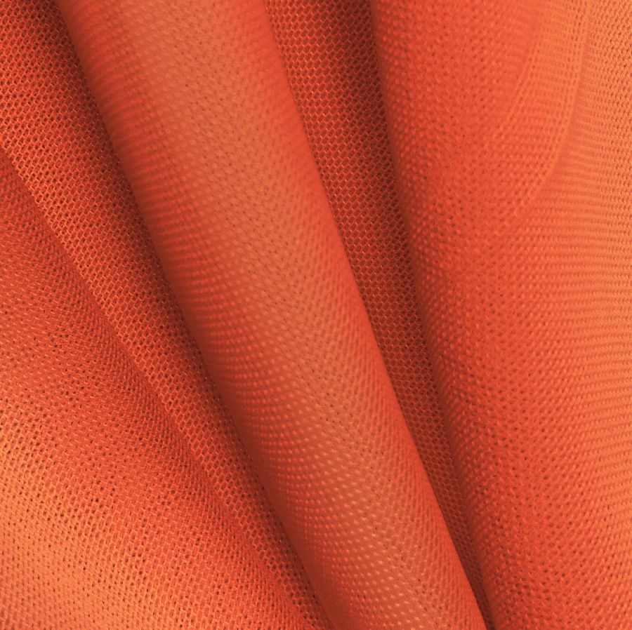 La tela base, Tul Elástico - Oslo, tiene una composición de 94% poliéster y 6% elastano, con un gramaje de 80 gr/m2 y un ancho de 147 cm. Su color liso impreso es rojo annato, con un CMYK de 0 78 74 0, lo que produce un tono cálido y vibrante. Este color es simbólico de la pasión y la vitalidad, y combina especialmente bien con tonos tierra, como el marrón y el beige.