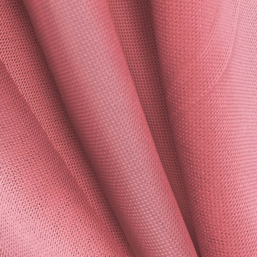 La tela base es el Tul Elástico - Oslo, compuesta de 94% poliéster y 6% elastano, con un gramaje de 80 gr/m2 y una anchura de 147 cm. El color liso impreso en esta tela es un Rojo Coral con una combinación de tinta Cyan del 5, Magenta del 67, Yellow del 40 y lo más llamativo es que no utiliza tinta Black. Este color simboliza la pasión, la energía y la vitalidad, y combina bien con tonos neutros como blanco, gris y beige, también queda bien con tonos más intensos como violeta y verde. La tela está impresa con el color en una sola cara por impresión digital textil, lo que da una gran precisión en la definición del color.