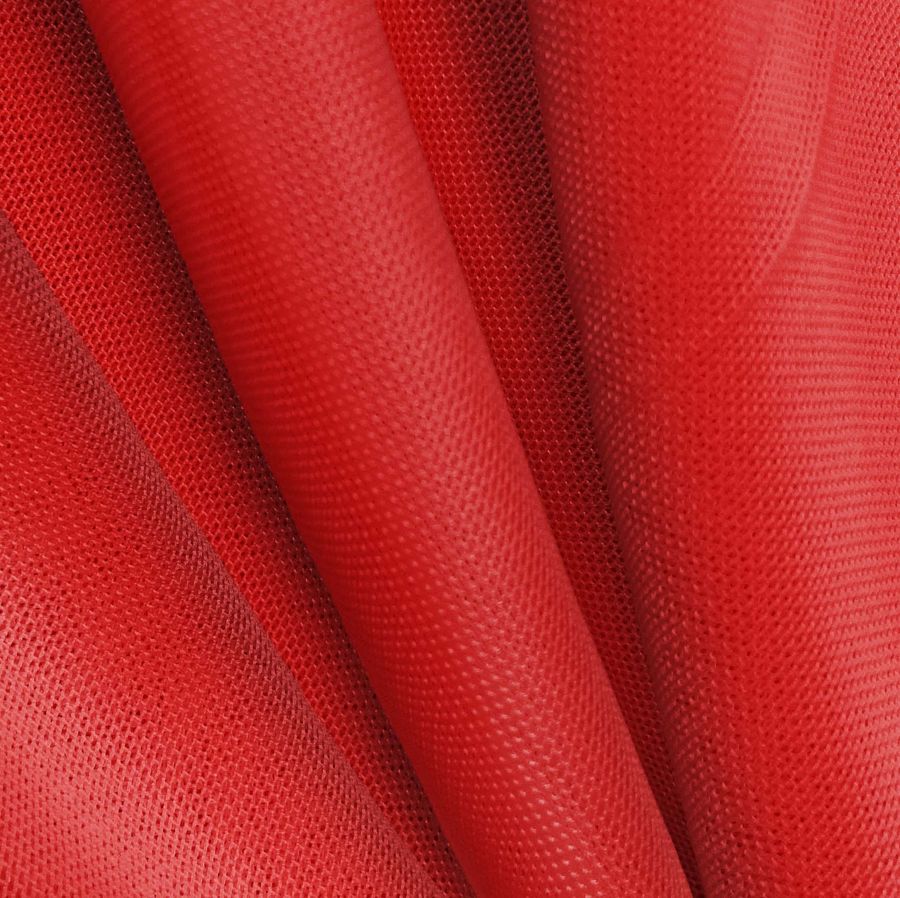 La tela base es el Tul Elástico - Oslo, compuesto por un 94% de poliéster y un 6% de elastano con un gramaje de 80 gr/m2 y un ancho de 147 cm. El color liso impreso es un rojo oscuro, obtenido con los siguientes valores CMYK: 15 100 100 7. Este color se caracteriza por su intensidad y profundidad, creando un efecto elegante y sofisticado. Combina especialmente bien con colores neutros como el blanco o el negro, así como con tonalidades doradas o plateadas.