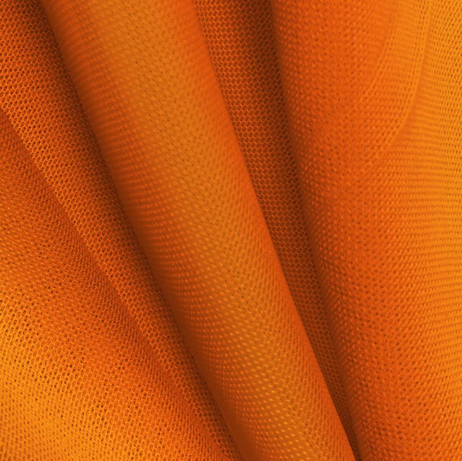 La tela base de este tejido es el Tul Elástico - Oslo, un tul compuesto por un 94% de poliéster y un 6% de elastano. Su gramaje es de 80 gr/m2 y su ancho es de 147 cm. El color liso impreso en esta tela base es un Naranja Aeroespacial, el cual posee una combinación de 0 de cian, 75 de magenta, 97 de amarillo y 0 de negro en su CMYK. Este color se caracteriza por su tonalidad naranja suave, que transmite calidez y energía. En combinación con otros colores, el naranja encaja bien con tonos terrosos y neutros como el beige, el marrón y el gris.