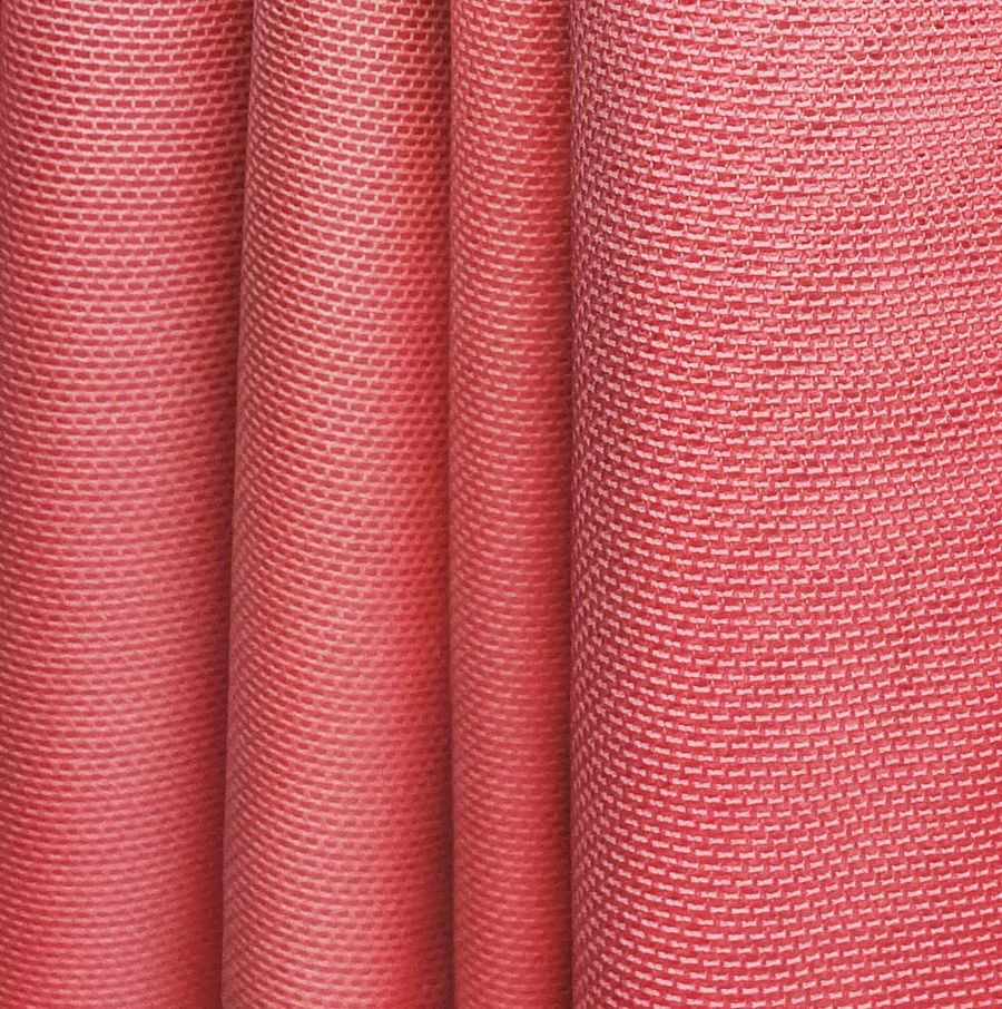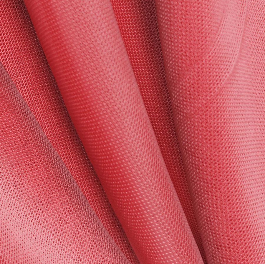 La tela base es un Tul Elástico - Oslo de 94% poliéster y 6% elastano con un gramaje de 80 gr/m2 y un ancho de 147 cm. El color liso impreso es un rosa laca de granza con una combinación de tintas CMYK de 11 85 64 2. Este color secundario se describe como un rosa oscuro y profundo que simboliza la pasión y el romanticismo. Se combina bien con tonos más claros de rosa y gris, así como con tonos cálidos de naranja y dorado.