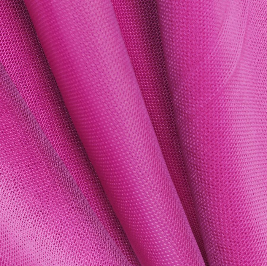 Este tejido base, el Tul Elástico - Oslo, es una tela transparente y delgada compuesta por 94% poliéster y 6% elastano, con un gramaje de 80 gr/m2 y un ancho de 147 cm. La tela tiene un tacto elástico y se adapta perfectamente al cuerpo. El color liso impreso es un elegante Rosa Clavel Oscuro con una combinación de colores CMYK de 24 94 2 0. Este color secundario es vibrante y cálido, y se combina especialmente bien con tonalidades azuladas, verdes y grises.