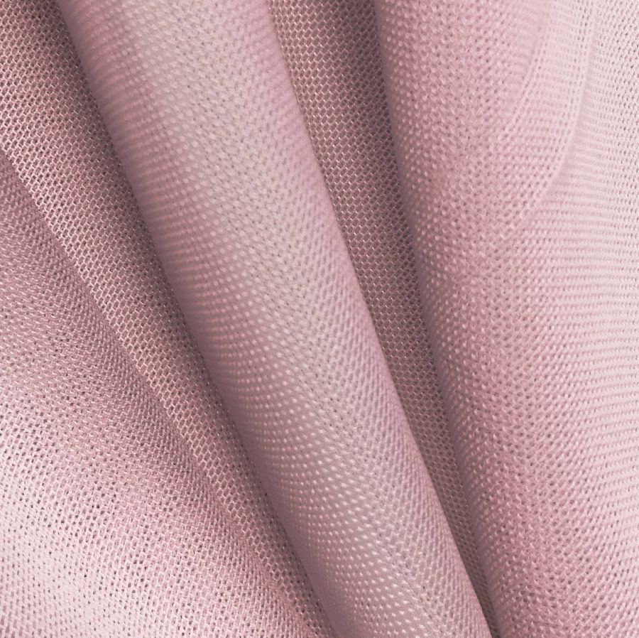 La tela base es el tul elástico Oslo, compuesta por un 94% de poliéster y un 6% de elastano, con un gramaje de 80 gr/m2 y un ancho de 147 cm. El color liso impreso es rosa colorete con un CMYK de 11 41 21 1, lo que indica una tonalidad suave y cálida, combinando tonos de rosa, magenta y amarillo con una mínima cantidad de negro. Este color secundario transmite suavidad y delicadeza, ideal para prendas de lencería o accesorios elegantes y románticos. También combina muy bien con tonos pastel como el beige, el blanco o el gris claro.