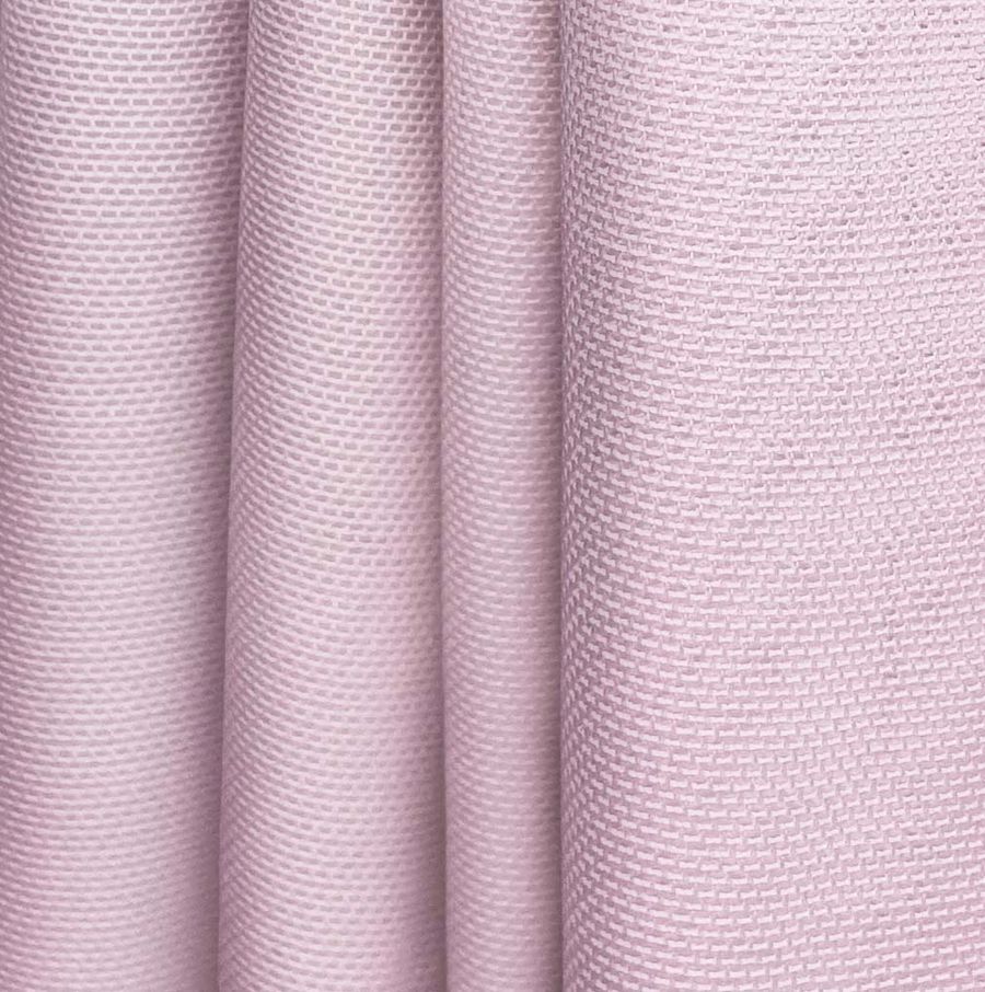 Las características generales de la tela base son su textura visual y su transparencia, combinadas con un tacto delgado y elástico. El color liso impreso aporta una intensidad y viveza al tejido, ofreciendo un contraste interesante entre la transparencia y el rosa pintalabios.