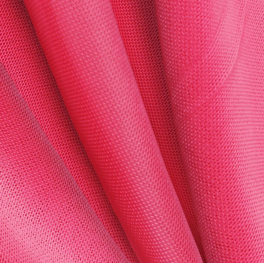 El Tul Elástico - Oslo es una tela compuesta de 94% poliéster y 6% elastano con un gramaje de 80 gr/m2 y un ancho de 147 cm. Su color liso impreso es rosa-rojizo, el cual se logra mediante la combinación de 0% de cian, 90% de magenta, 51% de amarillo y 0% de negro, con un perfil de color CMYK de 0 90 51 0. Este color denota emoción y pasión, que se mezcla con un toque suave y femenino.