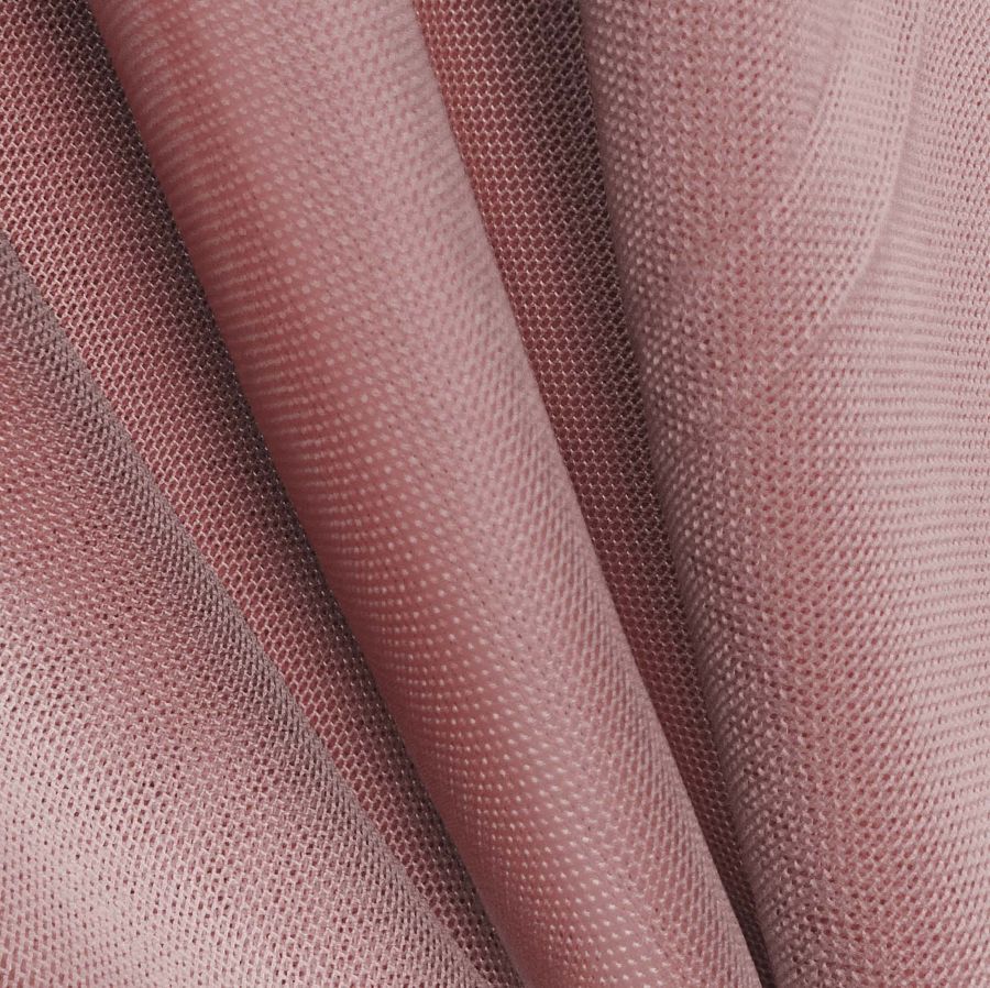 Este tejido base es el Tul Elástico - Oslo de composición 94% POLIÉSTER y 6% ELASTANO, con un gramaje de 80 gr/m2 y un ancho de 147 cm. El color liso impreso en este tejido es una combinación de rosa y cobre con un CMYK de 31 58 44 25. Esta combinación de colores secundarios transmite la sensación de dulzura y suavidad, mientras que el cobre añade un toque de elegancia y sofisticación. El color rosa combinado con el blanco, negro y gris crea un ambiente fresco y moderno, mientras que la combinación con el oro y las tonalidades marrones le da un aspecto elegante y enérgico.