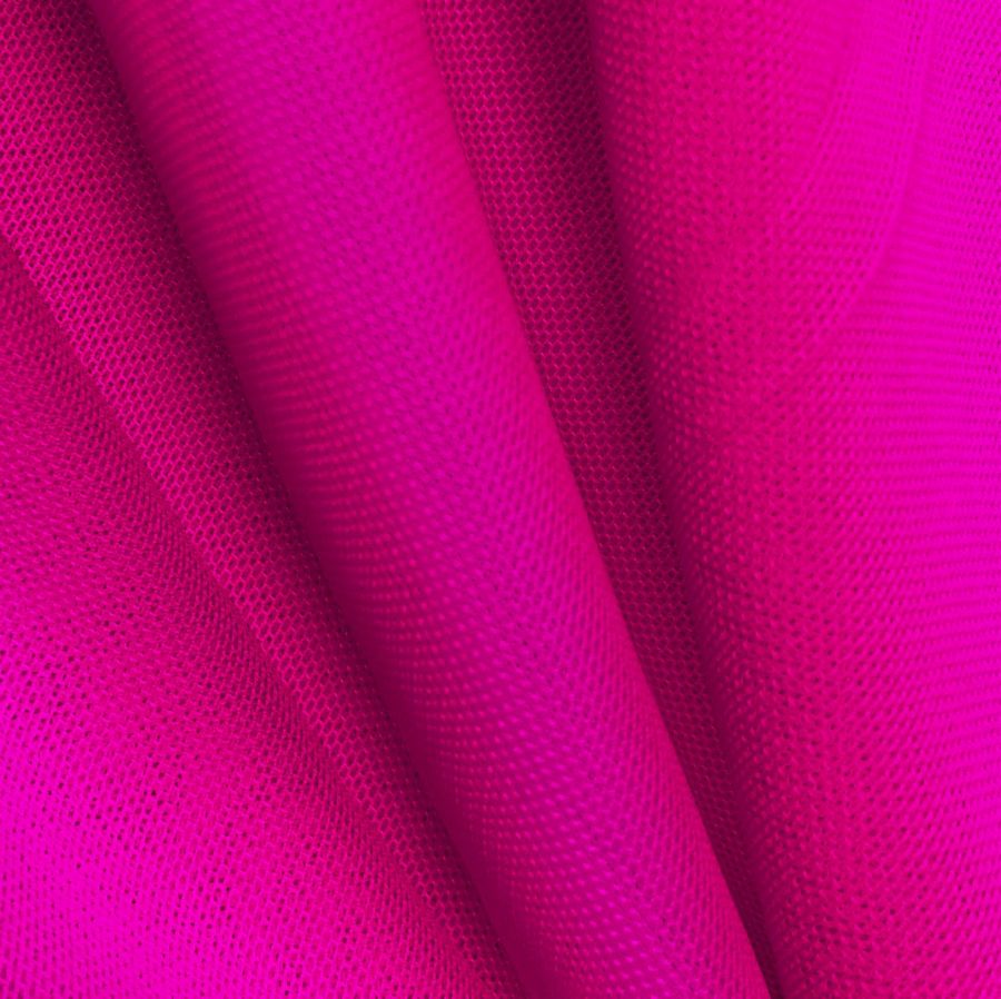 La tela base es el Tul Elástico - Oslo, compuesta por 94% poliéster y 6% elastano. El color liso impreso es el Rosa Mexicano, con un CMYK de 2 98 6 0, lo que indica una fuerte presencia de magenta y una baja presencia de cyan y amarillo. Este color simboliza la rosa, una flor asociada al amor, la pasión y la belleza. El rosa mexicano combina bien con tonos cálidos como amarillos, naranjas y rojos, así como con tonos fríos como el verde y el turquesa.