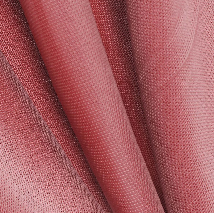 La tela base es el Tul Elástico - Oslo, de composición 94% poliéster y 6% elastano, con un gramaje de 80 gr/m2 y un ancho de 147 cm. El color liso impreso es de un rosa intenso con tonalidad Rosé Valle, con un CMYK de 24 76 56 17. Este color simboliza el amor, la alegría y la energía positiva. Combinado con otros colores fríos como el tono azul o verde, genera un contraste armónico y equilibrado.