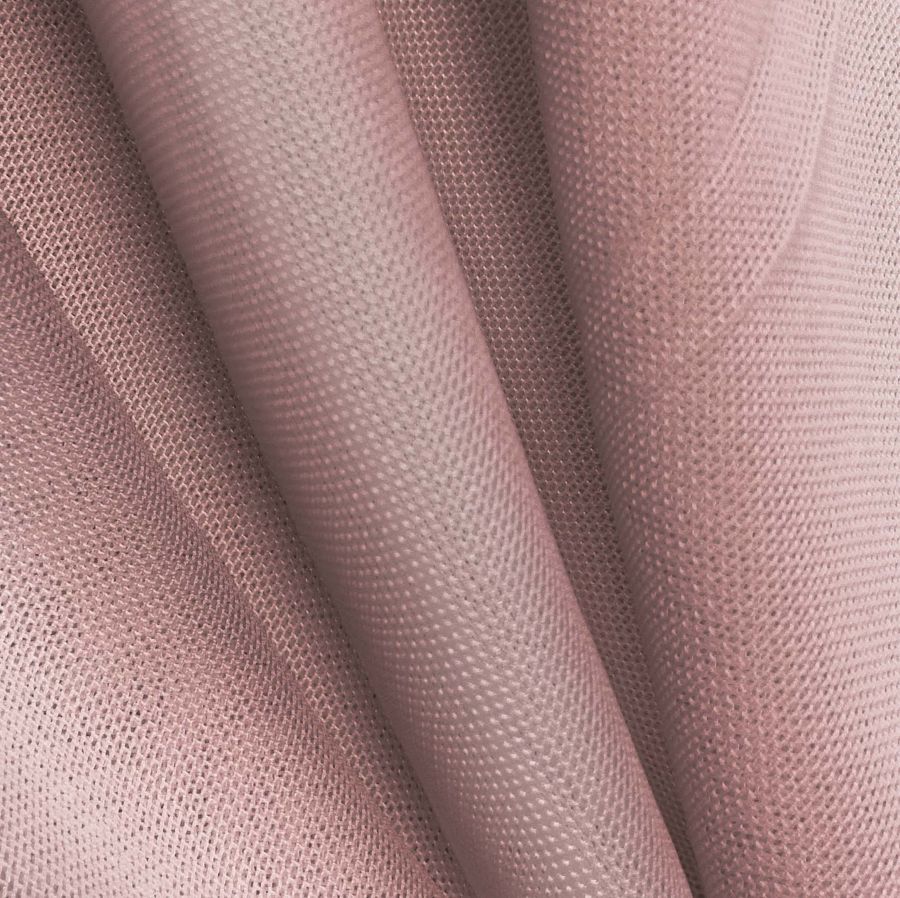 El Tul Elástico - Oslo es una tela de composición 94% POLIÉSTER, 6% ELASTANO, con un gramaje de 80 gr/m2 y un ancho de 147 cm. El color liso impreso en esta tela es una mezcla de rosa y RosyBrown, con una tinta Cyan de 24, Magenta de 45, Yellow de 34 y una tinta Black de 9, lo que se refleja en el CMYK: 24 45 34 9. Este color secundario transmite sutileza y sofisticación, en combinación con tonos claros y pastel, aporta elegancia y femineidad.