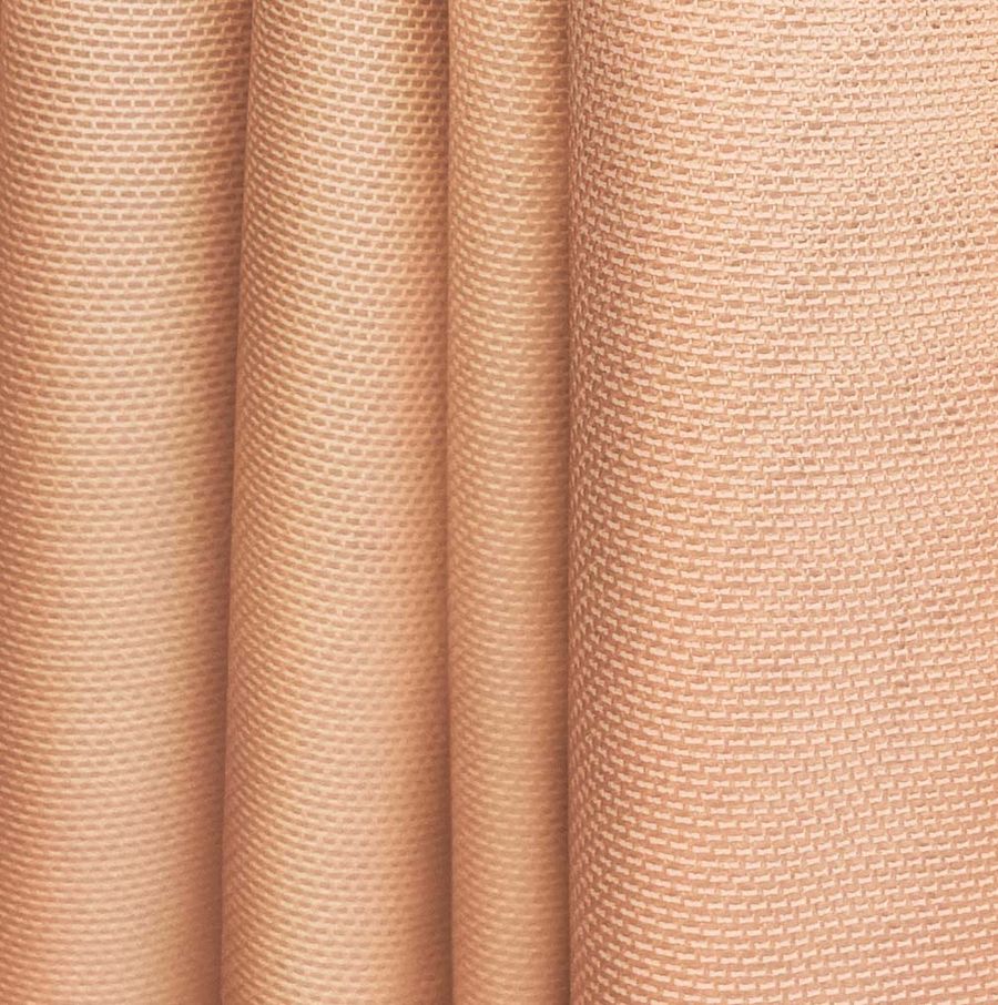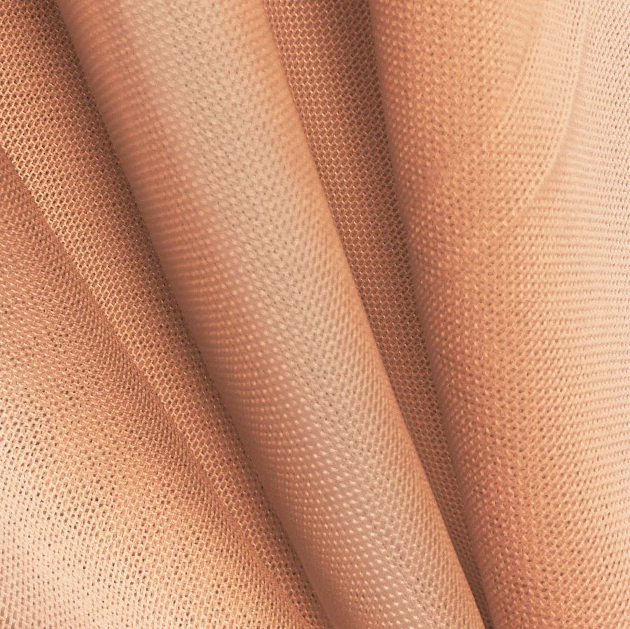 La tela base de nuestro tejido es el Tul Elástico - Oslo, compuesta de 94% poliéster y 6% elastano, con un gramaje de 80 gr/m2 y un ancho de 147cm. El color liso impreso es de un tono Rosa Salmón Luz, con una combinación de tintas en CMYK de 0 47 51 0, lo que le otorga un aspecto muy delicado y sutil. Este color secundario combina muy bien con tonos pastel, como el celeste, beige, gris y morado. Es importante mencionar que el tejido está impreso a una sola cara por impresión digital textil y no es un tejido tintado sino impreso.
