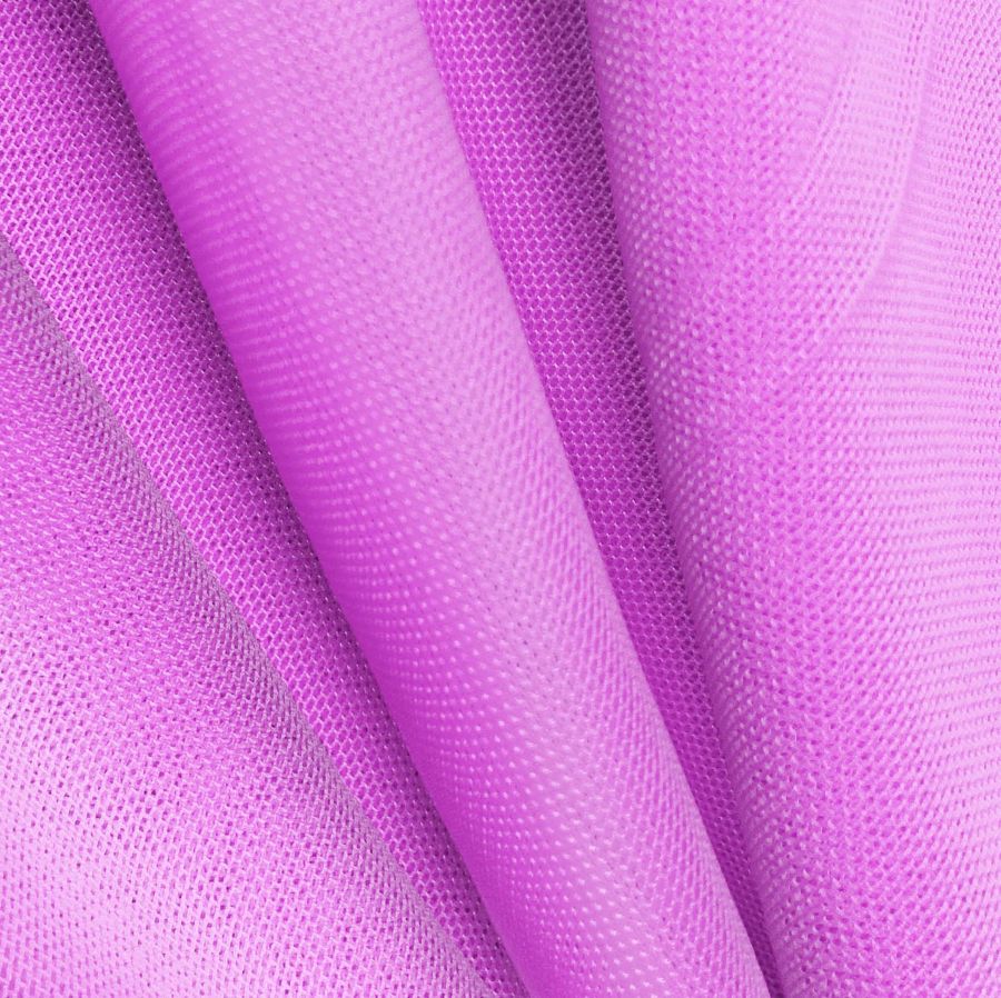 La tela base de nuestra prenda es Tul Elástico - Oslo, compuesta mayoritariamente por poliéster y con un 6% de elastano. Pertenece al grupo de las telas tul y presenta un gramaje de 80 gr/m2, siendo por tanto una tela ligera y delicada. Su color liso impreso, denominado Rosa Shocking Crayola, se obtiene mediante la combinación de un 27% de tinta cian y un 60% de tinta magenta, sin utilizarse tinta amarilla ni negra. Este color es intenso y vibrante, característico de los tonos chillones, y se combina muy bien con colores oscuros y neutros, así como con tonos pastel.