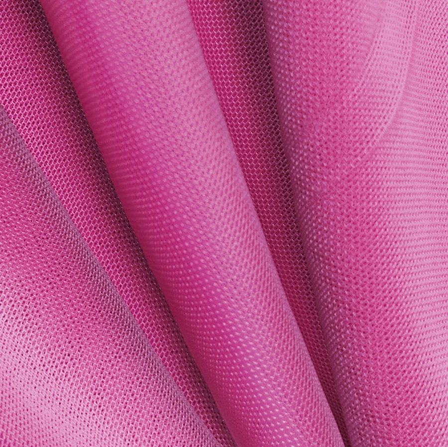 La tela base es el Tul Elástico - Oslo, compuesta por un 94% de poliéster y un 6% de elastano, con un gramaje de 80 gr/m2 y un ancho de 147 cm. El color liso impreso es rosa Smitten, cuyo CMYK es 21 85 11 1, con un predominio del magenta y una pincelada de cian y amarillo. Este color puede combinarse con otros tonos pastel y con el blanco, creando un aspecto elegante y suave. La tela está impresa con el color liso a una sola cara por impresión digital textil.
